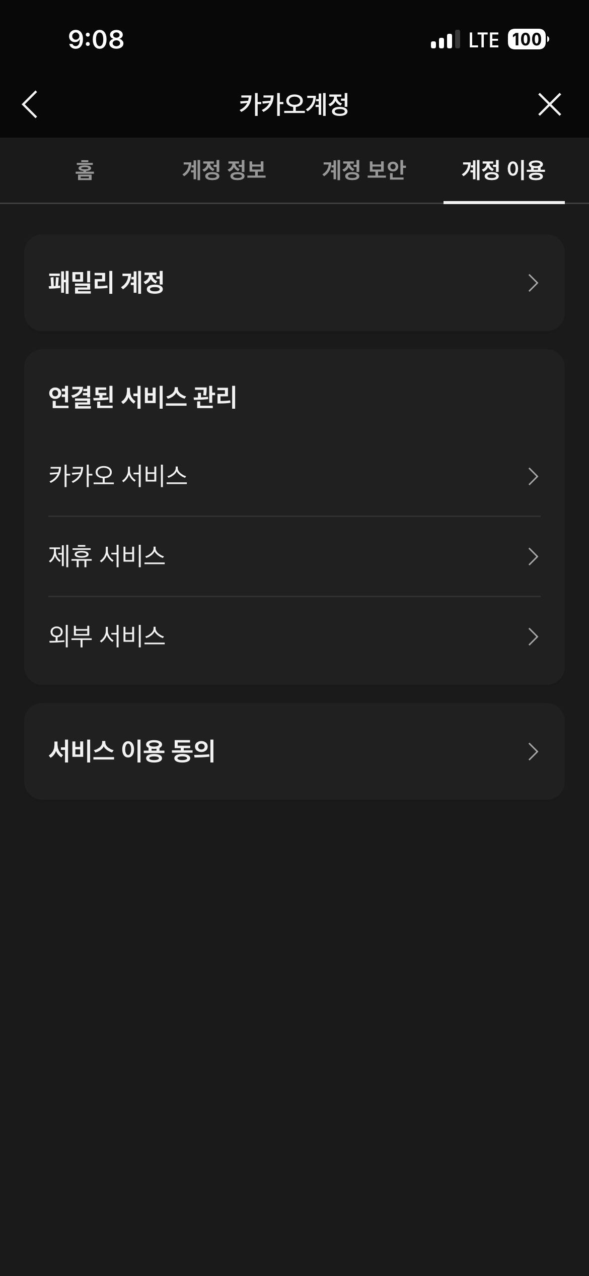 카카오톡 → 더보기(…) → 설정 → 카카오계정 → 개인정보 → 서비스 이용 동의